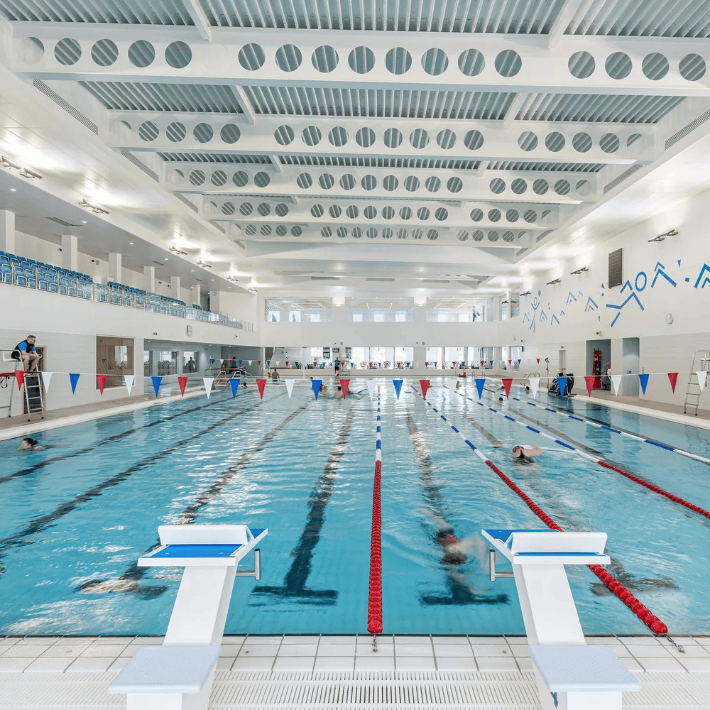 - Aluminium decking installed above the pool hall to withstand elevated temperatures and steam conditions