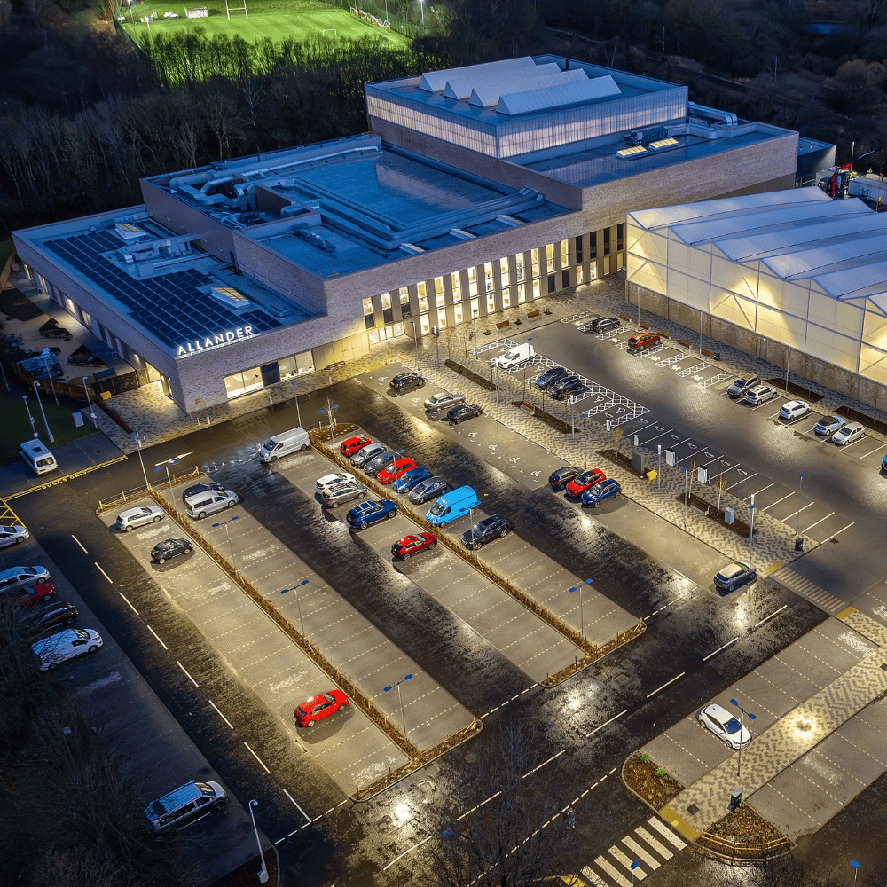 The Allander project was delivered adjacent to a live leisure centre and residential area, with multiple trades operating simultaneously in a constrained footprint.