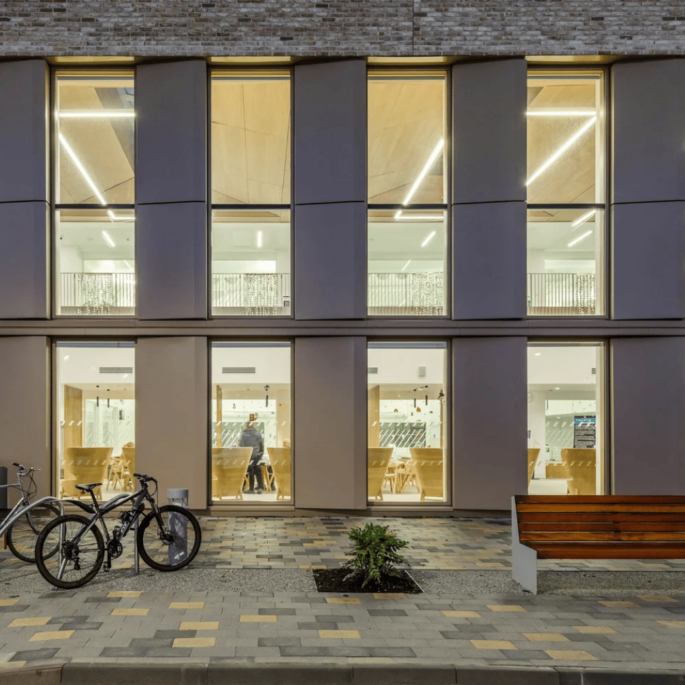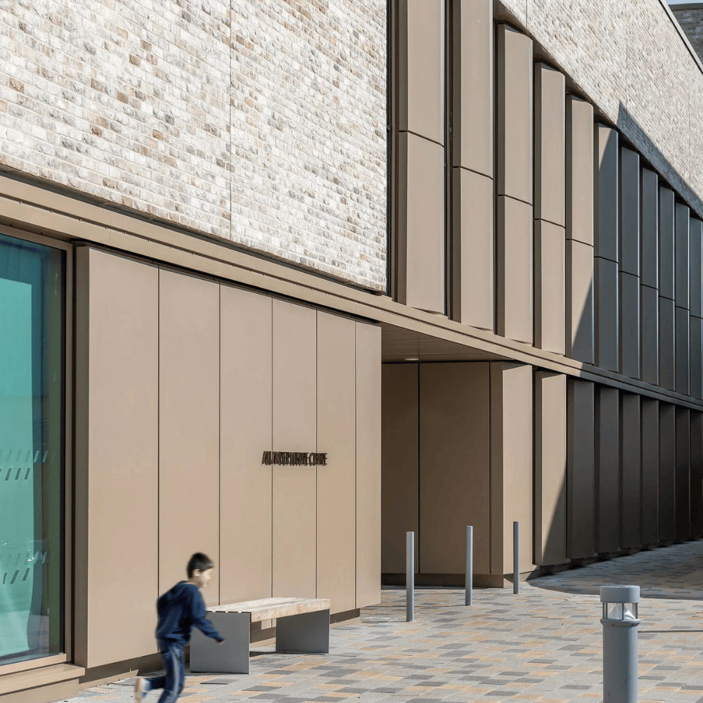 The façade package included complex detailing, notably the installation of translucent panels sourced internationally and positioned on high‑level elevations to introduce natural light deep into the building. Ground‑level cladding was carefully cut and detailed to prevent access to the underside and ensure public safety in family‑focused areas.